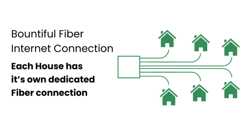 But with Bountiful Fiber, our customers get a direct connection to our network, right from our hub to your home. That means no sharing with other users and no slowdowns during peak usage hours. Your connection is yours and yours alone! Here’s an example of what that looks like: