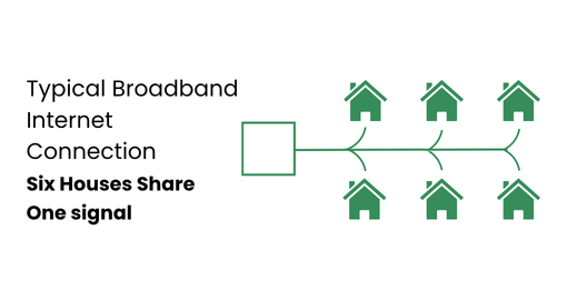 Did you know that with most Internet service providers, you’re actually sharing your connection—and speed—with your neighbors? This is often because the entire neighborhood is using the same cable to connect, which can slow you down! Here’s an example of how that kind of network work: